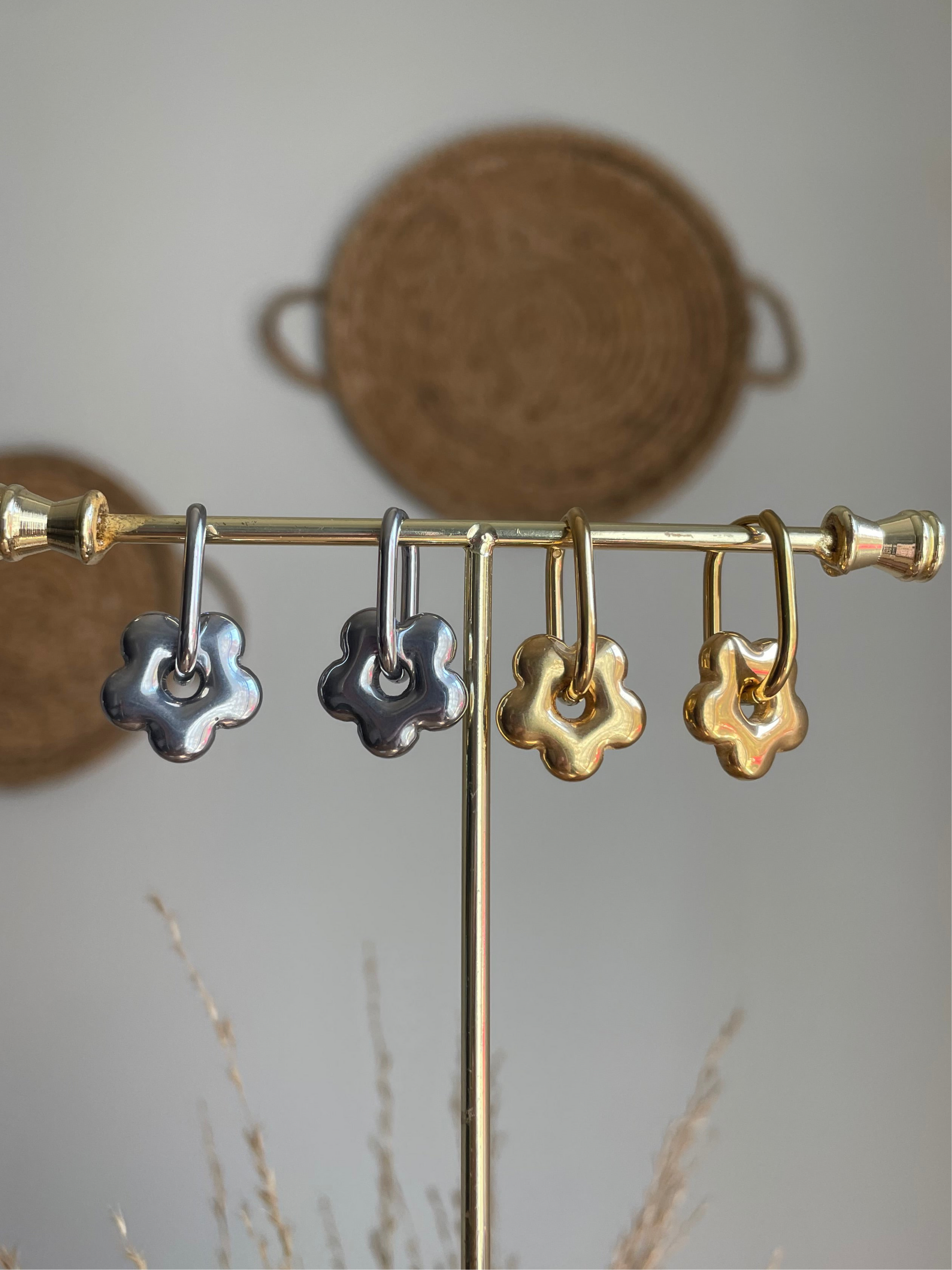 Beautiful Chunky Daisy Flower Huggie Hoop Earrings