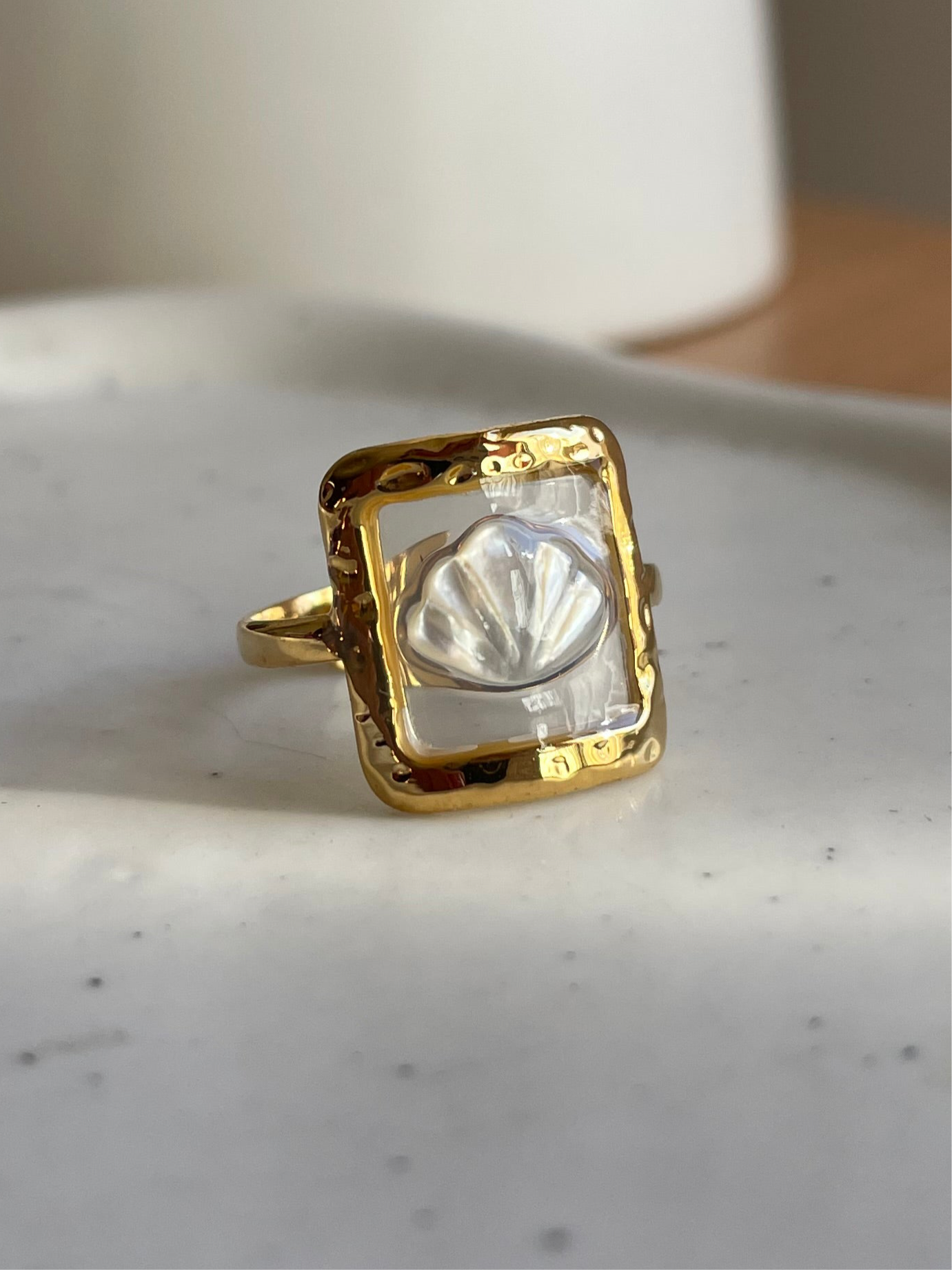 Beautiful Transparent Pearl Seashell Ring
